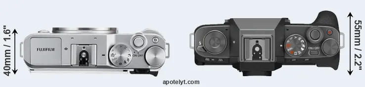 The above size and weight comparisons are to some extent incomplete since they do not consider the interchangeable lenses that both of these cameras require. In this particular case, both cameras feature the same lens mount, so that they can use the same lenses. You can compare the optics available in the Fujinon X Lens Catalog. Mirrorless cameras, such as the two under consideration, have the additional advantage of having a short flange to focal plane distance, which makes it possible to mount many lenses from other systems onto the camera via adapters.