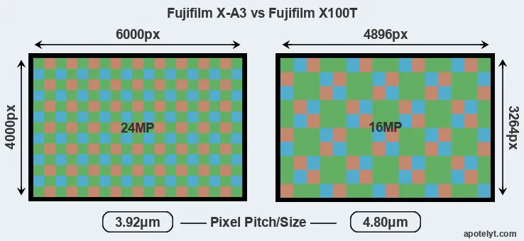 Fujifilm X-A3 and Fujifilm X100T sensor measures