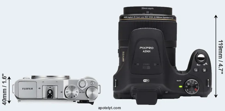 The above size and weight comparisons are to some extent incomplete and possibly misleading, as the AZ901 has a lens built in, whereas the X-A3 is an interchangeable lens camera that requires a separate lens. Attaching the latter will add extra weight and bulk to the setup. You can compare the optics available for the X-A3 and their specifications in the Fujinon X Lens Catalog.