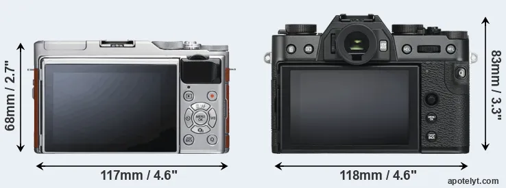 The above size and weight comparisons are to some extent incomplete since they do not consider the interchangeable lenses that both of these cameras require. In this particular case, both cameras feature the same lens mount, so that they can use the same lenses. You can compare the optics available in the Fujinon X Lens Catalog. Mirrorless cameras, such as the two under consideration, have the additional advantage of having a short flange to focal plane distance, which makes it possible to mount many lenses from other systems onto the camera via adapters.