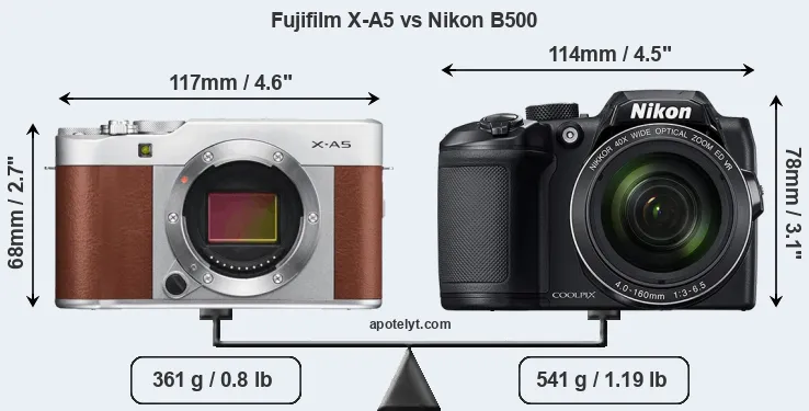 | Body Specs | Fujifilm X-A5 | Nikon B500 |