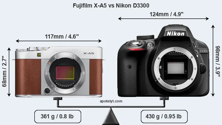 | Body Specs | Fujifilm X-A5 | Nikon D3300 |