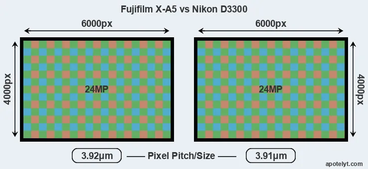 | Sensor Specs | Fujifilm X-A5 | Nikon D3300 |