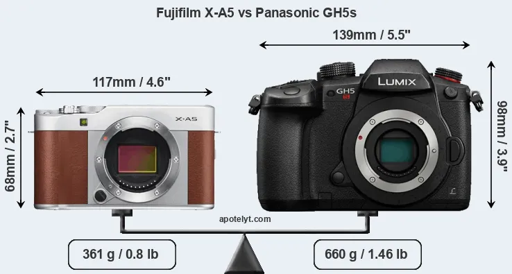 | Body Specs | Fujifilm X-A5 | Panasonic GH5s |