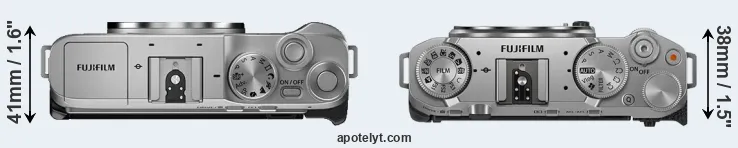 The above size and weight comparisons are to some extent incomplete since they do not consider the interchangeable lenses that both of these cameras require. In this particular case, both cameras feature the same lens mount, so that they can use the same lenses. You can compare the optics available in the Fujinon X Lens Catalog. Mirrorless cameras, such as the two under consideration, have the additional advantage of having a short flange to focal plane distance, which makes it possible to mount many lenses from other systems onto the camera via adapters.