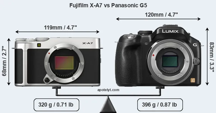 | Body Specs | Fujifilm X-A7 | Panasonic G5 |