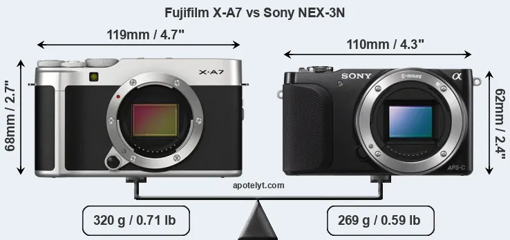 | Body Specs | Fujifilm X-A7 | Sony NEX-3N |
