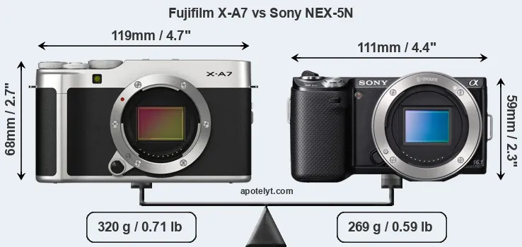 | Body Specs | Fujifilm X-A7 | Sony NEX-5N |