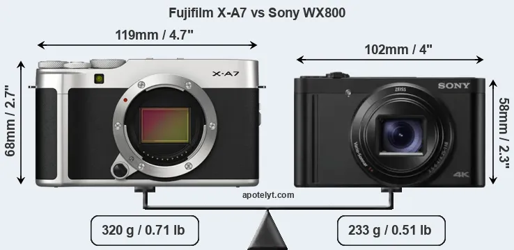 | Body Specs | Fujifilm X-A7 | Sony WX800 |