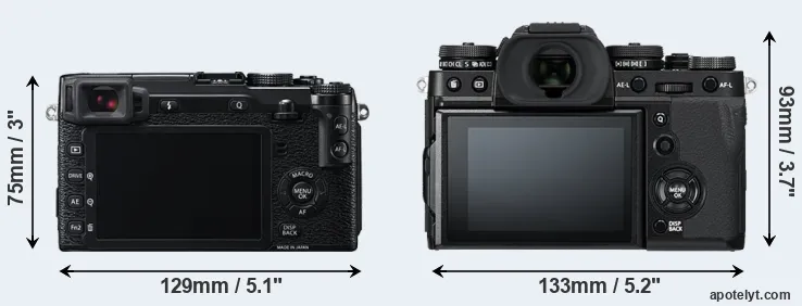 The above size and weight comparisons are to some extent incomplete since they do not consider the interchangeable lenses that both of these cameras require. In this particular case, both cameras feature the same lens mount, so that they can use the same lenses. You can compare the optics available in the Fujinon X Lens Catalog. Mirrorless cameras, such as the two under consideration, have the additional advantage of having a short flange to focal plane distance, which makes it possible to mount many lenses from other systems onto the camera via adapters.
