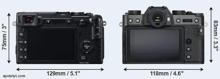 The above size and weight comparisons are to some extent incomplete since they do not consider the interchangeable lenses that both of these cameras require. In this particular case, both cameras feature the same lens mount, so that they can use the same lenses. You can compare the optics available in the Fujinon X Lens Catalog. Mirrorless cameras, such as the two under consideration, have the additional advantage of having a short flange to focal plane distance, which makes it possible to mount many lenses from other systems onto the camera via adapters.