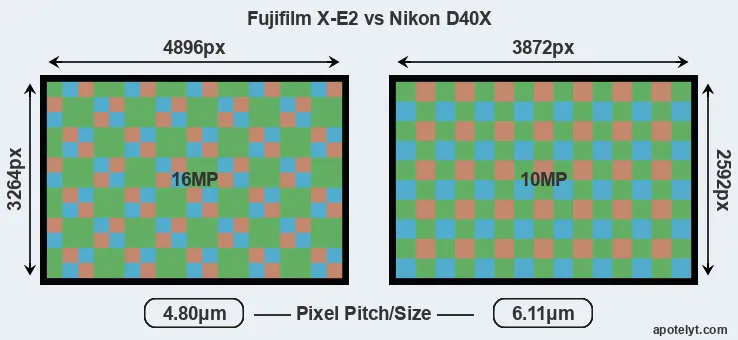 | Sensor Specs | Fujifilm X-E2 | Nikon D40X |