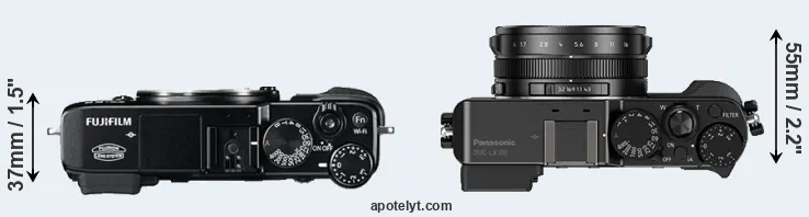 If the front view area (width x height) of the cameras is taken as an aggregate measure of their size, the Panasonic LX100 is notably smaller (22 percent) than the Fujifilm X-E2. In this context, it is worth noting that neither the X-E2 nor the LX100 are weather-sealed.