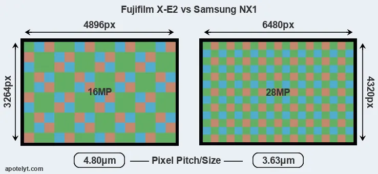 | Sensor Specs | Fujifilm X-E2 | Samsung NX1 |