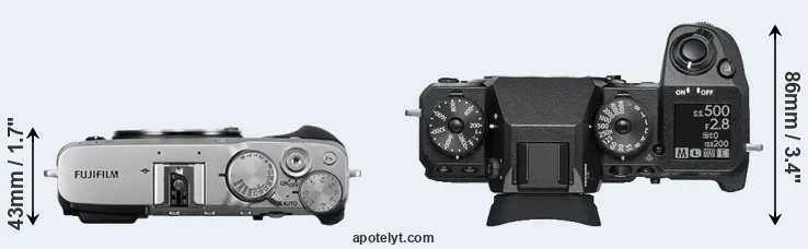 The above size and weight comparisons are to some extent incomplete since they do not consider the interchangeable lenses that both of these cameras require. In this particular case, both cameras feature the same lens mount, so that they can use the same lenses. You can compare the optics available in the Fujinon X Lens Catalog. Mirrorless cameras, such as the two under consideration, have the additional advantage of having a short flange to focal plane distance, which makes it possible to mount many lenses from other systems onto the camera via adapters.