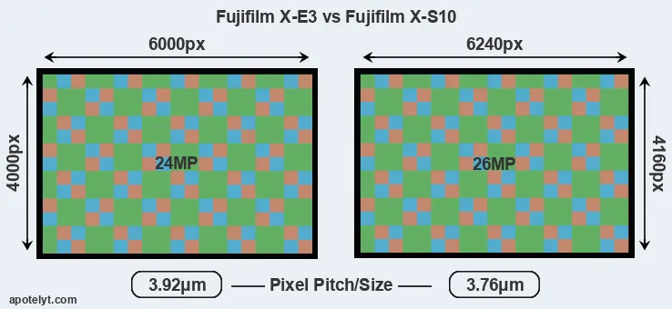 | Sensor Specs | Fujifilm X-E3 | Fujifilm X-S10 |