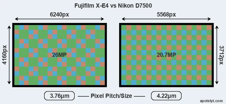| Sensor Specs | Fujifilm X-E4 | Nikon D7500 |