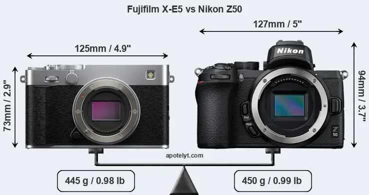 | Body Specs | Fujifilm X-E5 | Nikon Z50 |