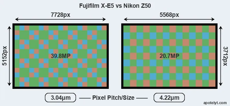 | Sensor Specs | Fujifilm X-E5 | Nikon Z50 |