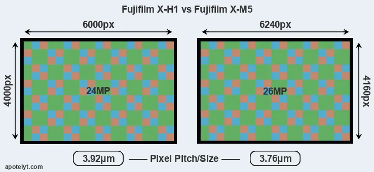 | Sensor Specs | Fujifilm X-H1 | Fujifilm X-M5 |