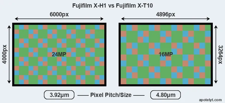 | Sensor Specs | Fujifilm X-H1 | Fujifilm X-T10 |