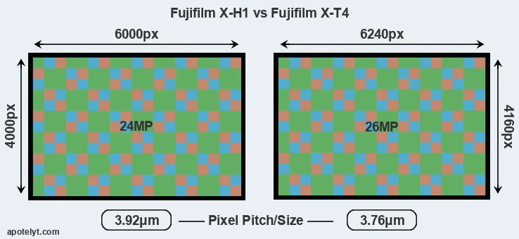 | Sensor Specs | Fujifilm X-H1 | Fujifilm X-T4 |