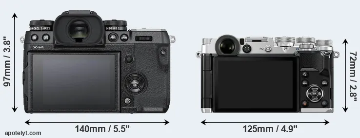 If the front view area (width x height) of the cameras is taken as an aggregate measure of their size, the Olympus PEN-F is considerably smaller (34 percent) than the Fujifilm X-H1. Moreover, the PEN-F is substantially lighter (37 percent) than the X-H1. It is worth mentioning in this context that the X-H1 is splash and dust resistant, while the PEN-F does not feature any corresponding weather-sealing.