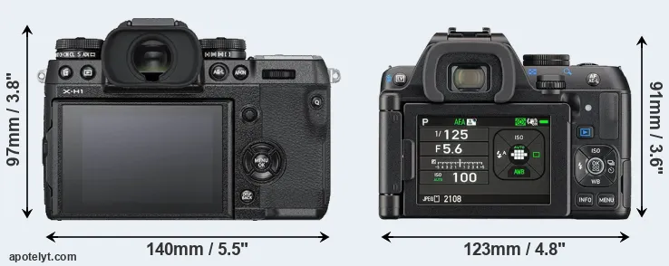 Going beyond this snapshot of core features and characteristics, what are the differences between the Fujifilm X-H1 and the Pentax K-S2? Which one should you buy? Read on to find out how these two cameras compare with respect to their body size, their imaging sensors, their shooting features, their input-output connections, and their reception by expert reviewers.
