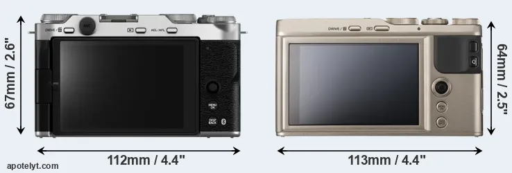 Both cameras under consideration feature an APS-C sensor, but their sensors differ slightly in size. The sensor area in the XF10 is 1 percent bigger. They nevertheless have the same format factor of 1.5. Both cameras have a native aspect ratio (sensor width to sensor height) of 3:2.