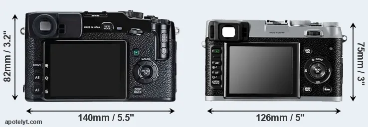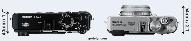 If the front view area (width x height) of the cameras is taken as an aggregate measure of their size, the Fujifilm X100 is notably smaller (18 percent) than the Fujifilm X-Pro1. In this context, it is worth noting that neither the X-Pro1 nor the X100 are weather-sealed.