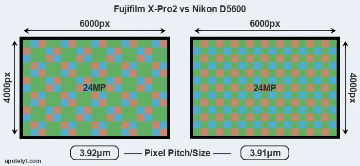 | Sensor Specs | Fujifilm X-Pro2 | Nikon D5600 |