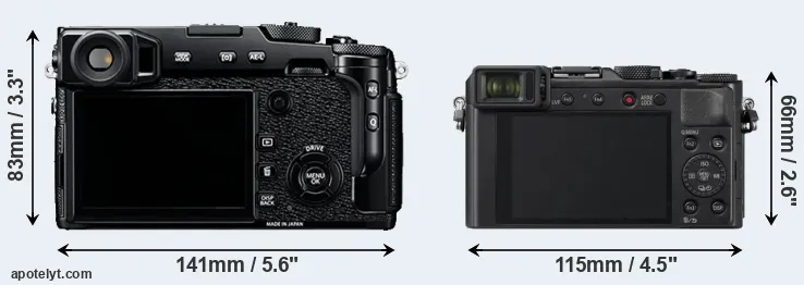 The above size and weight comparisons are to some extent incomplete and possibly misleading, as the LX100 II has a lens built in, whereas the X-Pro2 is an interchangeable lens camera that requires a separate lens. Attaching the latter will add extra weight and bulk to the setup. You can compare the optics available for the X-Pro2 and their specifications in the Fujinon X Lens Catalog.