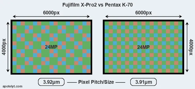 Fujifilm X-Pro2 and Pentax K-70 sensor measures