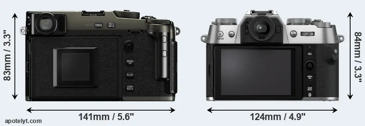 The above size and weight comparisons are to some extent incomplete since they do not consider the interchangeable lenses that both of these cameras require. In this particular case, both cameras feature the same lens mount, so that they can use the same lenses. You can compare the optics available in the Fujinon X Lens Catalog. Mirrorless cameras, such as the two under consideration, have the additional advantage of having a short flange to focal plane distance, which makes it possible to mount many lenses from other systems onto the camera via adapters.