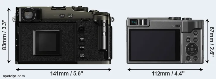 The above size and weight comparisons are to some extent incomplete and possibly misleading, as the ZS70 has a lens built in, whereas the X-Pro3 is an interchangeable lens camera that requires a separate lens. Attaching the latter will add extra weight and bulk to the setup. You can compare the optics available for the X-Pro3 and their specifications in the Fujinon X Lens Catalog.