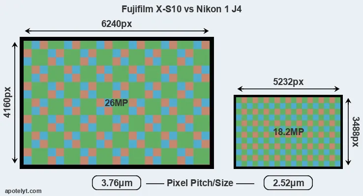 | Sensor Specs | Fujifilm X-S10 | Nikon 1 J4 |