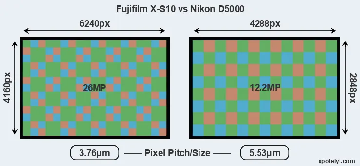 | Sensor Specs | Fujifilm X-S10 | Nikon D5000 |