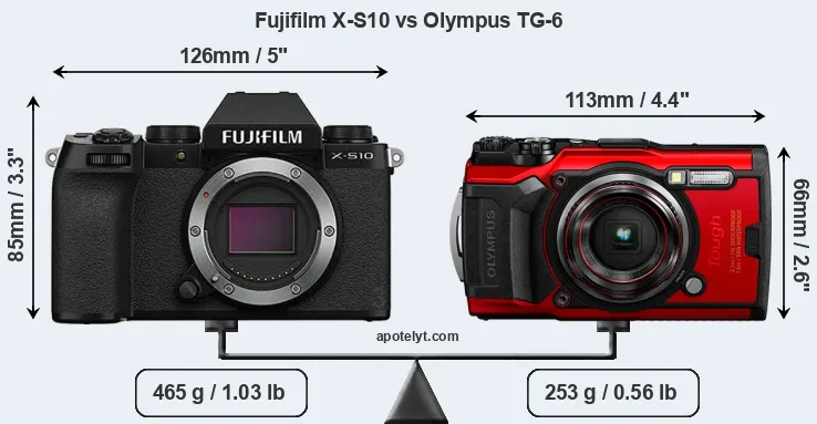 | Body Specs | Fujifilm X-S10 | Olympus TG-6 |