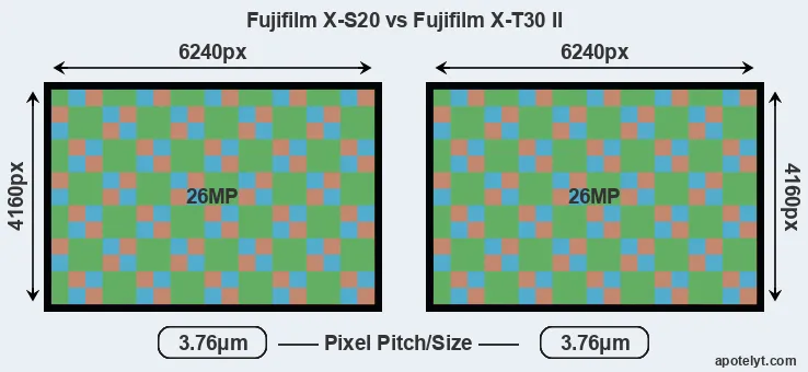 | Sensor Specs | Fujifilm X-S20 | Fujifilm X-T30 II |