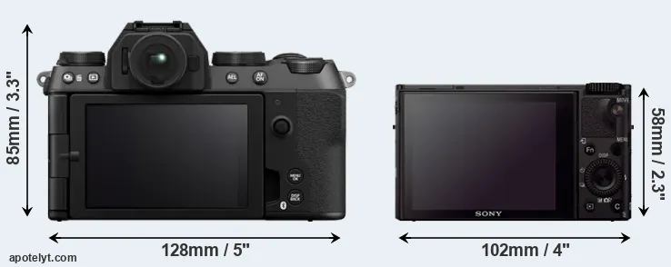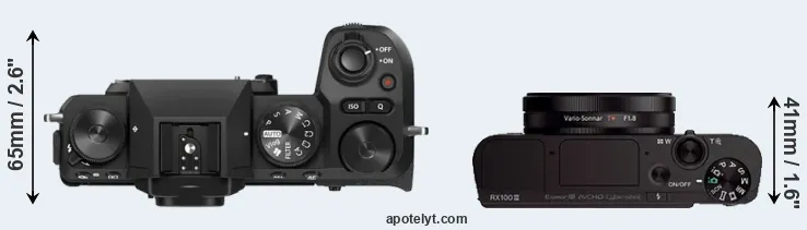 If the front view area (width x height) of the cameras is taken as an aggregate measure of their size, the Sony RX100 III is considerably smaller (46 percent) than the Fujifilm X-S20. In this context, it is worth noting that neither the X-S20 nor the RX100 III are weather-sealed.