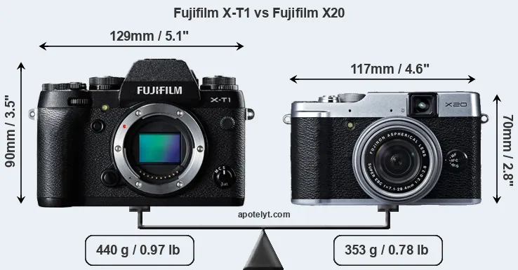 The above size and weight comparisons are to some extent incomplete and possibly misleading, as the X20 has a lens built in, whereas the X-T1 is an interchangeable lens camera that requires a separate lens. Attaching the latter will add extra weight and bulk to the setup. You can compare the optics available for the X-T1 and their specifications in the Fujinon X Lens Catalog.