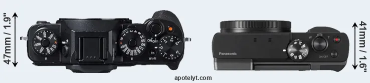 The above size and weight comparisons are to some extent incomplete and possibly misleading, as the ZS70 has a lens built in, whereas the X-T1 is an interchangeable lens camera that requires a separate lens. Attaching the latter will add extra weight and bulk to the setup. You can compare the optics available for the X-T1 and their specifications in the Fujinon X Lens Catalog.