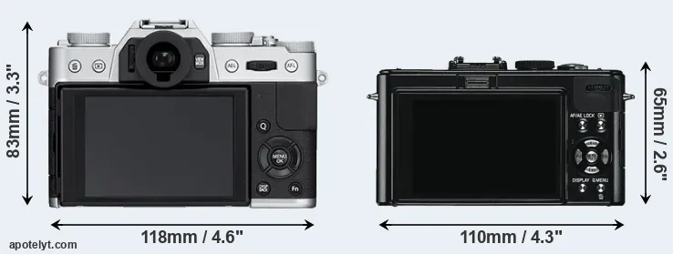 The above size and weight comparisons are to some extent incomplete and possibly misleading, as the D-LUX 5 has a lens built in, whereas the X-T10 is an interchangeable lens camera that requires a separate lens. Attaching the latter will add extra weight and bulk to the setup. You can compare the optics available for the X-T10 and their specifications in the Fujinon X Lens Catalog.