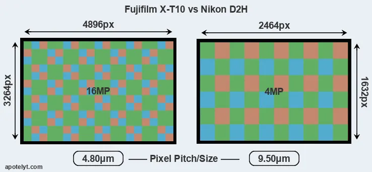 | Sensor Specs | Fujifilm X-T10 | Nikon D2H |