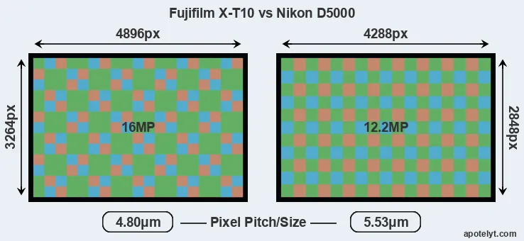 | Sensor Specs | Fujifilm X-T10 | Nikon D5000 |
