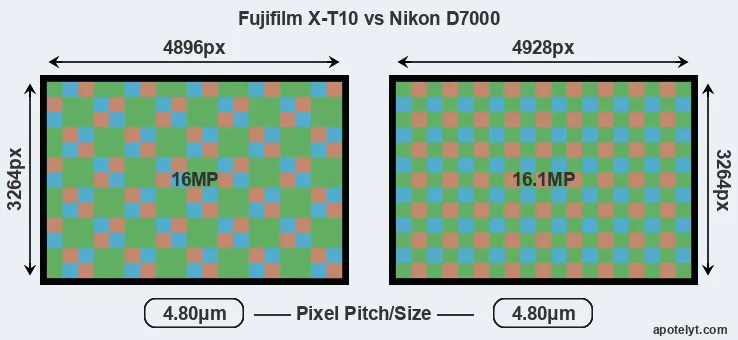 | Sensor Specs | Fujifilm X-T10 | Nikon D7000 |