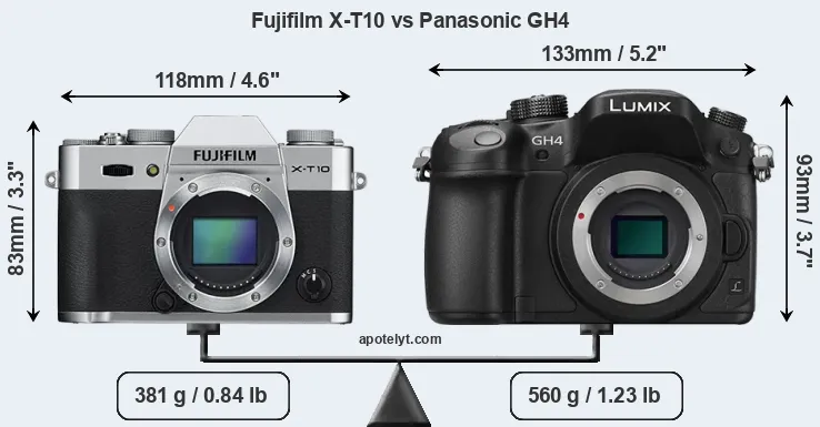 Size Fujifilm X-T10 vs Panasonic GH4