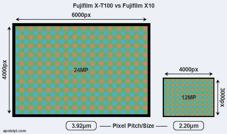 | Sensor Specs | Fujifilm X-T100 | Fujifilm X10 |