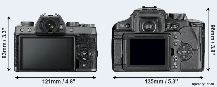 | 1. | Fujifilm X-T100 | 121 mm | 83 mm | 47 mm | 448 g | 430 | n | May 2018 | US$ 599 | ebay.com | |