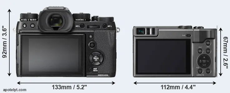 The above size and weight comparisons are to some extent incomplete and possibly misleading, as the ZS70 has a lens built in, whereas the X-T2 is an interchangeable lens camera that requires a separate lens. Attaching the latter will add extra weight and bulk to the setup. You can compare the optics available for the X-T2 and their specifications in the Fujinon X Lens Catalog.
